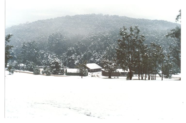 After four months of searching, Hugh Montgomery (with the help of the Ritchie family of Delatite Station near Mansfield) found Darling’s mountain. He had turned off the Mount Buller Road and down a track marked ‘Howqua Track – Bridle Path’, climbed through a fence and found: “a beautiful valley full of trees that had been there for a long time, and at the bottom of the valley was the lovely, small bubbling Timbertop Creek”. It was the perfect site for Darling’s experiment.